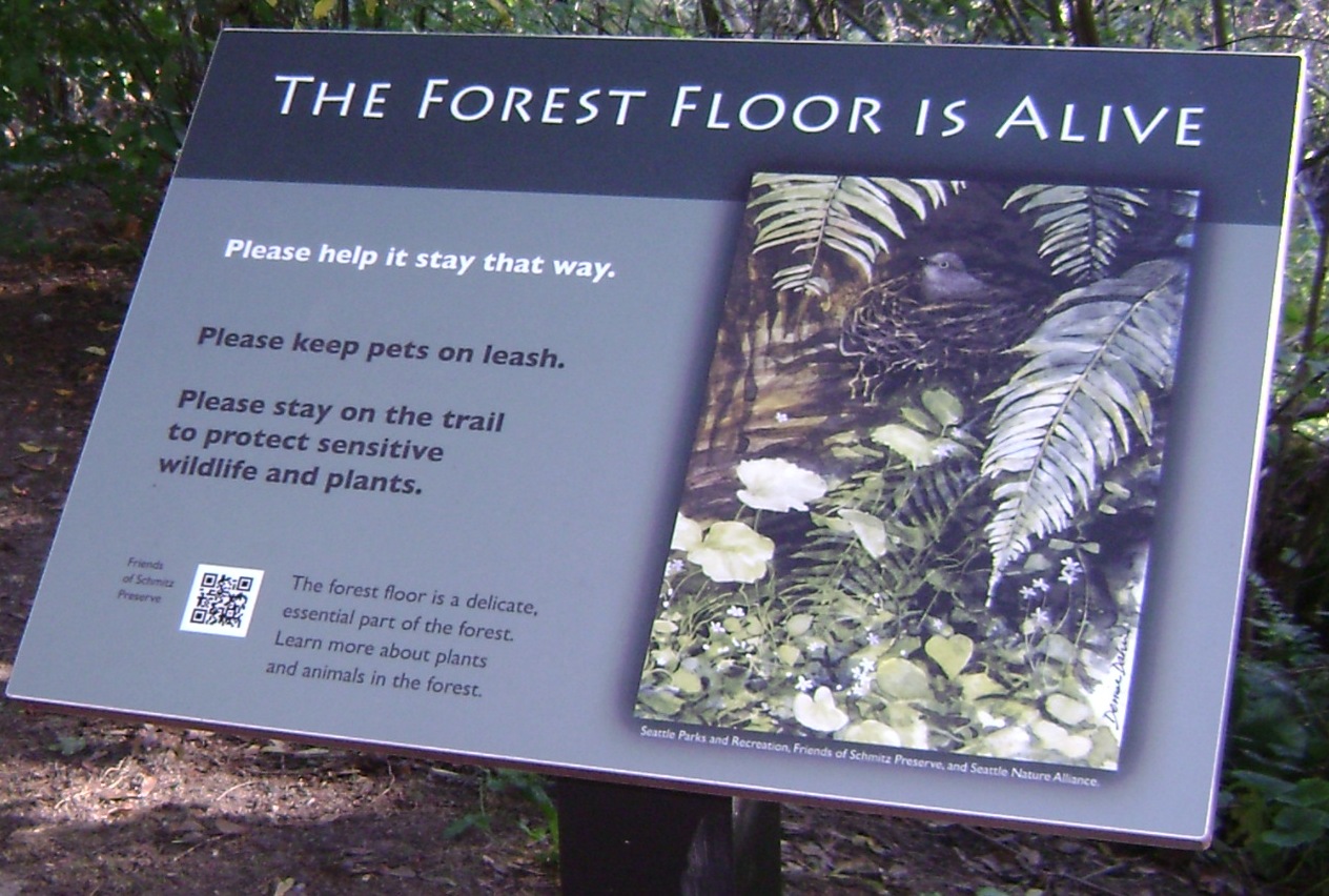 The first 40 people to become members of the Seattle Nature Alliance will receive a print of the watercolor painting by Denise Dahn used on the Forest Floor sign.