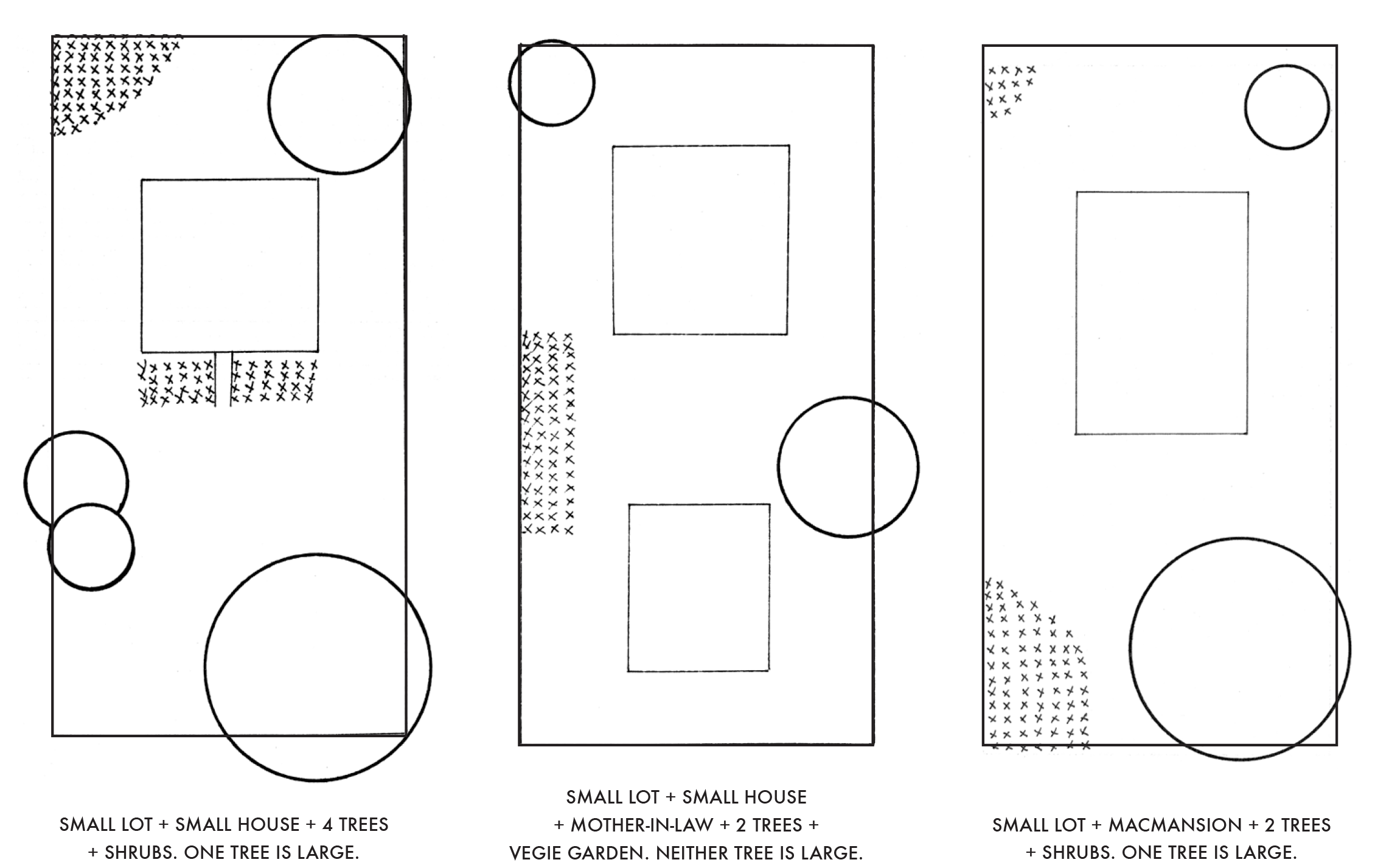 Take a look at any hillside in Seattle and imagine it without those great green cones or the big deciduous trees. Erase them in your mind’s eye. Then tell me what city you are looking at—it’s not nice, and it is certainly not Seattle. The problem is not the size of the lot; the problem is the size of the buildings.