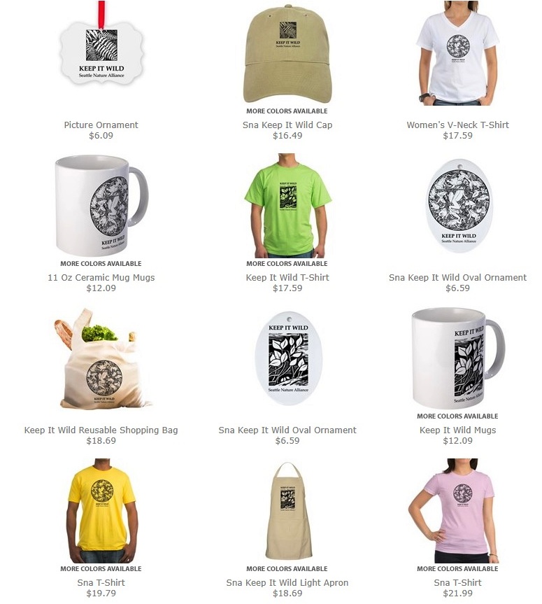 A small percentage of your purchase price will go to the Seattle Nature Alliance, to help us spread the word and continue our work – to Keep it Wild! Click on the image below to go to our online store (there is more there!)
